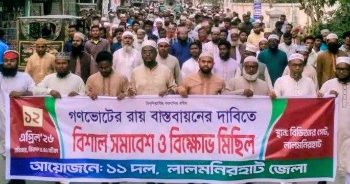 গণভোটের আলোকে জনরায় দ্রুত বাস্তবায়নের দাবিতে লালমনিরহাটে বিক্ষোভ মিছিল ও সমাবেশ করেছে বাংলাদেশ জামায়াতে ইসলামীসহ ১১ দলীয় ঐক্যজোট।
