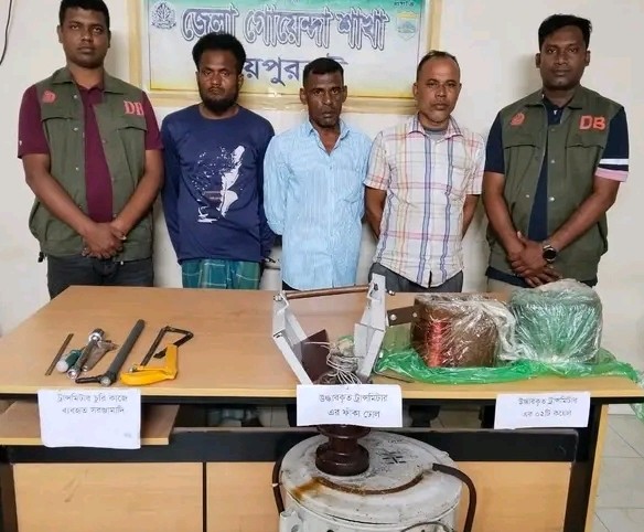 জয়পুরহাট সদর উপজেলায় পল্লী বিদ্যুতের ট্রান্সফরমার চুরির চাঞ্চল্যকর ঘটনায় তিনজনকে গ্রেপ্তার করেছে জেলা গোয়েন্দা শাখা (ডিবি) পুলিশ। এসময় তাদের কাছ থেকে চুরি যাওয়া ট্রান্সফরমারের গুরুত্বপূর্ণ যন্ত্রাংশসহ বিপুল পরিমাণ মালামাল উদ্ধার করা হয়েছে।