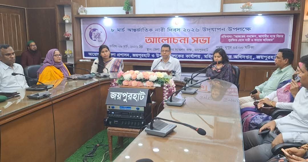 গতকার রবিবার ( ৮ মার্চ ) বিকেলে জয়পুরহাট জেলা প্রশাসকের সম্মেলন কক্ষে আলোচনা সভা অনুষ্ঠিত হয়।