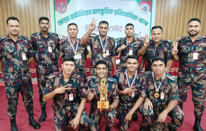 বিজিবির দিনাজপুর সেক্টর কমান্ডারের আয়োজনে আন্ত: ব্যাটালিয়ন সাংস্কৃতিক প্রতিযোগিতায় জয়পুরহাট ২০ বিজিবি প্রথম স্থান অর্জন করে। উক্ত প্রতিযোগিতায় দেশের গান, আধুনিক গান, নজরুল সঙ্গীত, রবীন্দ্রনাথ সংগীত, জারি গান ও লালন সংগীত পরিবেশন করে বিজিবি সদস্যরা। প্রতিযোগিতায় জয়পুরহাট-২০, ফুলবাড়ী-২৯ ও দিনাজপুর-৪২ ব্যাটালিয়নের বিজিবির শিল্পী সদস্যরা অংশ গ্রহণ করেন। জয়পুরহাট-২০ ব্যাটালিয়নের সুবেদার অসীম কুমার মারাকের নেতৃত্বে আন্ত:ব্যাটালিয়ান সংস্কৃতিক প্রতিযোগিতায় অংশগ্রহণ করে বিজিবি সদস্য। দিনাজপুর সেক্টর কমান্ডার কর্নেল মোঃ মিজানুর রহমান পিএসসি বিজয়ী দলের হাতে পুরস্কার তুলে দেন। জয়পুরহাট ২০ ব্যাটালিয়নের অধিনায়কের পক্ষে চ্যাম্পিয়ন গোল্ড মেডেল গ্রহণ করেন সুবেদার অসীম কুমার মারাক।