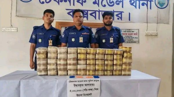 পরবর্তীতে বস্তা দুটি খুলে দেখা যায়, সেগুলোর ভেতরে ৫০টি প্যাকেটে সংরক্ষিত প্রায় ৫ লাখ পিস ইয়াবা রয়েছে, যার বাজারমূল্য বিপুল বলে ধারণা করা হচ্ছে।