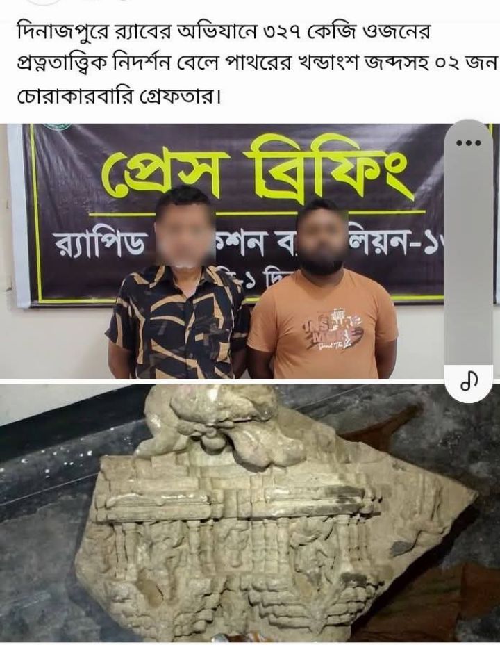 জয়পুরহাট সদর উপজেলার পাঁচুরচক ফকিরপাড়া এলাকা থেকে উদ্ধার হলো আলোচিত প্রত্নতাত্ত্বিক নিদর্শন বেলে পাথরের খণ্ডাংশ। র্যাব-১৩ এর বিশেষ অভিযানে ৩২৭ কেজি ওজনের ওই পাথর উদ্ধার করা হয়। এ ঘটনায় জড়িত দুই চোরাকারবারিকেও গ্রেফতার করেছে র্যাব।