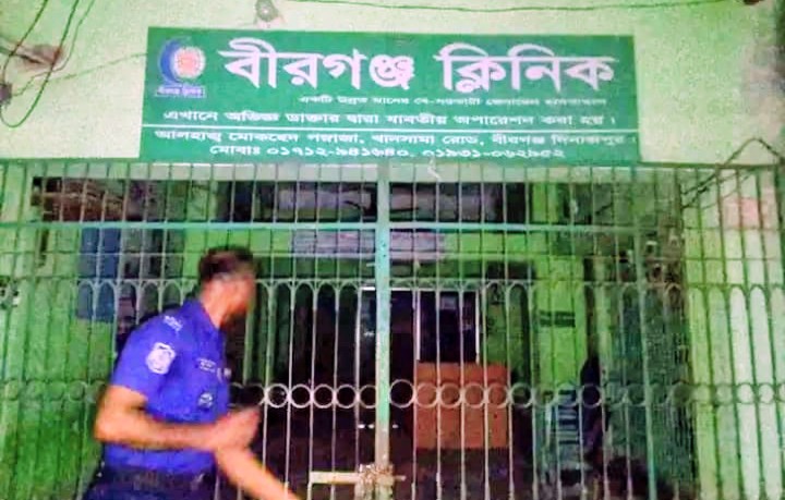 পরে বীরগঞ্জ থানার অফিসার ইনচার্জ (ওসি) সাইফুল ইসলামের নেতৃত্বে পুলিশের টিম ঘটনাস্থলে উপস্থিত হয়ে পরিস্থিতি নিয়ন্ত্রণে আনে। এ রিপোর্ট লেখা পর্যন্ত ক্লিনিক কর্তৃপক্ষ পলাতক রয়েছে।