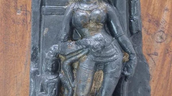 নওগাঁর মান্দা উপজেলার ভারসো ইউনিয়নের মহানগর মধ্যপাড়া এলাকায় মাটি ফেলার সময় একটি কষ্টিপাথরের ছোট মূর্তি উদ্ধার হয়েছে। রবিবার (২০ এপ্রিল ২০২৬) সকাল সাড়ে ১০টার দিকে এ ঘটনা ঘটে।