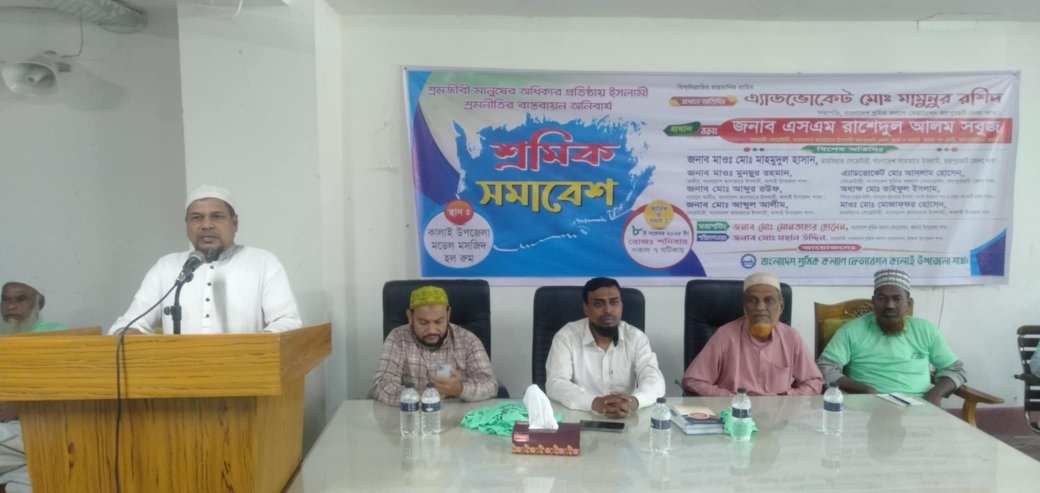 জয়পুরহাটের কালাই উপজেলা কেন্দ্রিয় মডেল মসজিদ অডিটোরিয়ামে শনিবার ৮ নভেম্বর সকাল সাড়ে আটটায় কালাই উপজেলা শ্রমিক কল্যাণ ফেডারেশনের আয়োজনে মোনতাহার হোসেনের সভাপতিত্বে অনুষ্ঠিত শ্রমিক সমাবেশ প্রধান অতিথির বক্তব্য রাখেন শ্রমিক কল্যাণ ফেডারেশন জয়পুরহাট জেলা শাখার সভাপতি এ্যাডঃ মোঃ মামুনুর রশীদ।