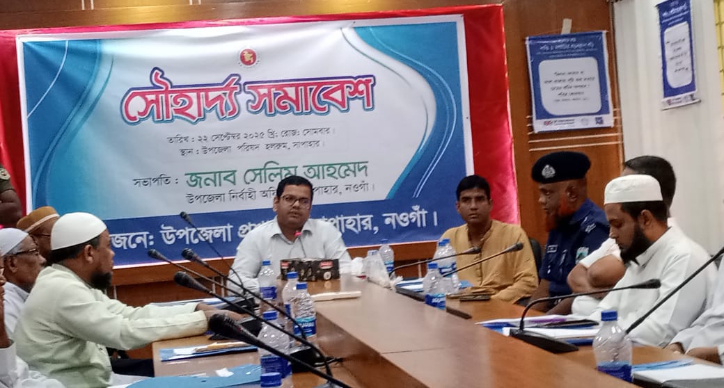 নওগাঁর সাপাহারে প্রথমবারের মত সৌহার্দ্য সমাবেশ অনুষ্ঠিত হয়েছে। মঙ্গলবার বেলা সাড়ে ১১ টায় উপজেলা পরিষদ সম্মেলন কক্ষে উপজেলা প্রশাসনের আয়োজনে বিভিন্ন ধর্মের ধর্মীয় প্রতিনিধি, রাজনৈতিক ব্যক্তিবর্গ, সুশীল সমাজের প্রতিনিধি, শিক্ষক প্রতিনিধি, সামাজিক সংগঠনের প্রতিনিধি, স্থানীয় গণমাধ্যমকর্মীদের নিয়ে উক্ত সৌহার্দ্য সমাবেশ অনুষ্ঠিত হয়। অনুষ্ঠানে সভাপতিত্ব করেন উপজেলা নির্বাহী অফিসার (ইউএনও) সেলিম আহমেদ।