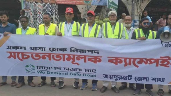 “সকল যাত্রা হোক নিরাপদ” এই প্রতিপাদকে সামনে রেখে নিরাপদ সড়ক চাই জয়পুরহাট জেলা শাখার আয়োজনে সচেতনতামূলক ক্যাম্পেইন অনুষ্ঠিত হয়েছে।